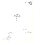 4 juin 1965. Brève lettre pour demander : « Mes envois arrivent-ils en bon état ? », illustrée du dessin d’un parapluie ouvert, et d’un petit personnage sortant les dessins d’un tube.