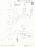 Un dessin signé (21,5 x 16 cm, encre noire, en-tête de New York), intitulé The Grall Story. Chapter one, représente un petit homme perdu dans New York, légendé : « I’m an poor man lost in an great town, because I’ve lost my carnet d’adresse ».
