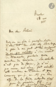 Hector BERLIOZ (1803-1869). L.A.S., Bruxelles 28 mars 1855, à Gaetano Belloni ; 1 page in-8, adresse.