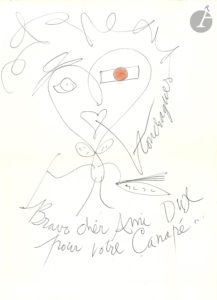 (l.a.s. au dos d’une gravure), Paul Fort (dédicace sur plaquette), Bernard Gavoty (l.s., 1971), Bertrand Poirot-Delpech (l.a.s., 1979), Geneviève Tabouis (l.s., 1974). – Touchagues : amusant dessin avec dédicace a.s. – 21 photographies (une en couleurs), à la scène, au cinéma, à la ville (formats divers).