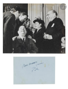 Ce mot est encadré avec une photographie (tirage argentique) représentant Strawinsky parmi des amis, dont Darius et Madeleine Milhaud.