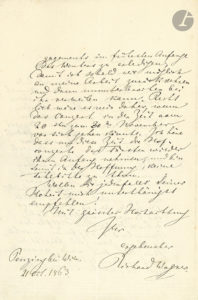 Richard WAGNER (1813-1883). L.A.S., Penzing près Vienne 21 octobre 1863, [au Kapellmeister Max Seifriz à Löwenberg] ; 2 pages in-8 ; en allemand.