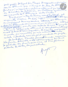 Louis ARAGON (1897-1982). Manuscrit autographe signé, [1963] ; 1 page et demie in-4.