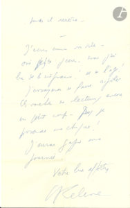 30 août. « Mon défenseur danois, Thorwald Mikkelsen sera à Paris vers le 5 sept. Je lui ai demandé de vous rendre visite. Il est non seulement mon défenseur mais mon garant auprès du Gt Danois. Je demeure chez lui à la campagne. Il connaît à fond mon affaire, ses mille idioties, ses épisodes… Il s’agirait à présent d’aboutir auprès de la Justice française… aboutir à quoi ?... » Il lui envoie un article d’Europe Amérique, « avec photos ignobles […] on les dirait prises à la morgue ! »… On joint cet article de Chambri [Pierre Monnier], interview de Céline au Danemark.