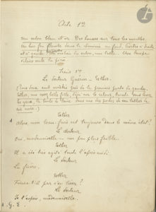 Manuscrit complet de cette pièce en 3 actes, créée au Théâtre Libre le 11 novembre 1887.