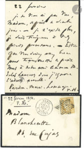 Victor HUGO. L.A.S. « V.H. », 22 février [1874], à Malvina Blanchecotte ; 1 page in-12 (deuil), enveloppe timbrée.