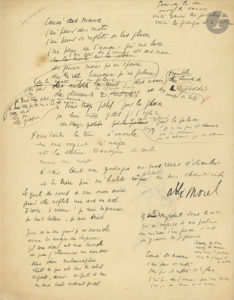 Manuscrit de travail, avec ratures et corrections, de ce poème, ici sans titre, publié sous le titre « Trop petit, trop grand » dans Les...