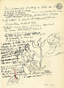 Brouillon très travaillé, surchargé de ratures et corrections, d’un poème recueilli dans L’Homme de cristal (1967, p. 64), où il est sous-titré « (inspiré par...