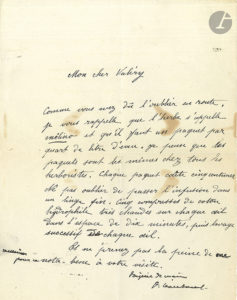 On joint une autre lettre de Léautaud à Paul Valéry, dictée (probablement à son amie Blanche Blanc) et signée avec quelques additions autographes, au sujet d’une infusion d’herbe pour soigner l’ophtalmie ; plus un billet a.s. (17 mars 1951) au sujet des couvertures du Petit Ami.