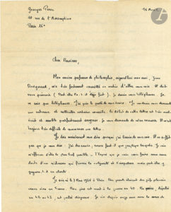 On joint une L.A.S. de Michel de M’Uzan à Perec, 4 octobre 1957 (1 p. in-8), l’interrogeant sur sa décision d’arrêter l’analyse, « parfaitement concevable en considération de l’importance du travail accompli »…