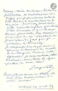 prends un intérêt bien tendre à vos douleurs et à vos joies. Embrassez pour moi cette aimable enfant qui mérite d’être heureuse et qui le sera. […] Je comprends bien ce que vous éprouvez de bonheur, de crainte et de chagrin devant cette séparation, je vous embrasse, chère Madame, avec toute la sympathie de mon cœur »...