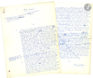Manuscrit de travail d’un projet de préface à la revue Tel Quel, que fonde Sollers avec Jean-Edern Hallier en 1960 ; il présente de...