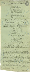André THEURIET (1833-1907). Manuscrit autographe signé, [Chansons populaires du Poitou] ; 3 pages in-fol. (traces de montage).