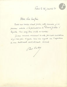 Paul VALÉRY (1871-1945). L.A.S., Paris 24 janvier 1931, à un « cher confrère » ; demi-page in-4.