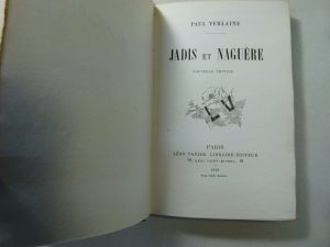 Seconde édition, en partie originale. Très bel exemplaire, sur papier vergé, enrichi d'un précieux envoi de Paul Verlaine à son "cher ami Fernand L'Anglois". Fernand L'Anglois, peintre et dessinateur, exécuta plusieurs portraits de Verlaine (voir Galantaris, n° 263 et 264). Verlaine rédigea un poème entièrement consacré à son ami : "À Fernand L'Anglois", paru dans le recueil Amour (1888) et repris dans Dédicaces (1890). Ex-libris gravé HH. Carteret, II, 424. Galantaris, n° 74.