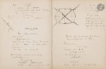 Les pages sont remplies d’une écriture cursive à l’encre noire, avec quelques passages au crayon, et de très nombreuses équations ; elles sont illustrées de nombreux croquis et schémas dans les marges.