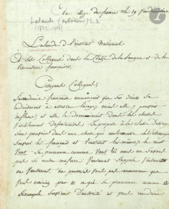 Joseph-Jérôme Lefrançois de LALANDE (1732-1807). L.S., Collège de France 19 vendémiaire, à ses collègues de la Classe de la langue et de la littérature française ; 1 page et quart in-4.