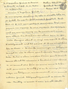 obtenir l’autorisation du retour pour des infirmières étrangères allant en congé avec esprit de retour » ; cela lui « simplifiera bien des choses ». Il indique le cas de l’infirmière suisse Verena Schmied : « elle est très nécessaire à Lambaréné (une infirmière ne pouvant plus faire son service comme il le faudrait, pour raison de santé) » ; il aimerait que le consulat de Zurich lui délivre son visa, ainsi qu’à une autre Suissesse…