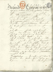 Achats (1739-1748 ; parchemins dont un avec sceau aux armes dans son boîtier en buis...