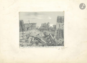 Dessins à la mine de plomb représentant l’ambulance de la tranchée au siège de Sébastopol, de jeunes filles bulgares au puits, la batterie de Malakoff après...