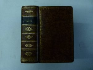 VIRGILE. Publii Virgilii Maronis Opera quae exstant omnia ex Heynio-Brunckiana recensione. Edidit J. A. Amar. Paris, Lefevre, 1821 ; 2 tomes en un vol. in-24, veau marbré, sur les plats encadrements de fins motifs dorés, dos lisse orné de motifs...