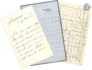 EUGÉNIE (1826-1920) Impératrice. 2 L.A.S. et 1 L.S., 1871-1875, à Lucien Corvisart ; 14 pages in-8.