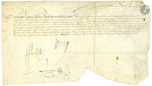 HENRI IV (1553-1610). P.S., au camp d’Alençon 26 décembre 1589 ; contresignée par Pierre Forget ; vélin oblong in-fol.