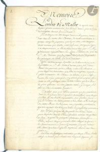 dans ce Royaume, comme dans tous les autres états chrétiens, de toute contribution à quelque charge ou imposition que ce pût être ; cette exemption aussi ancienne que l’ordre, a été confirmée, de règne en règne »… Le mémoire rappelle les lettres patentes de 1716 et réclame pour l’ordre une exemption générale de toute imposition, pour lui permettre des continuer ses missions : « il s’est chargé de la deffense de Malte qui est devenue dans ses mains l’azile du commerce pour la Méditerannée, le Boulevart de la Chretienté et la borne de l’Empire et de la secte de Mahomet […] Ainsi l’objet le plus cher à l’Ordre dans les prises qu’il fait sur les Turcs, est-il de délivrer les chrétiens qui se trouvent dans les fers, et de les sauver d’un esclavage dans lequel ils auroient vraysemblablement péri, et peut-être leur religion auroit succombé »...
