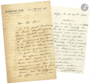 Paris 20 mai 1899, à un ami, au sujet d’un cheval pour le colonel Hache… – Alger 17 novembre 1922, à...
