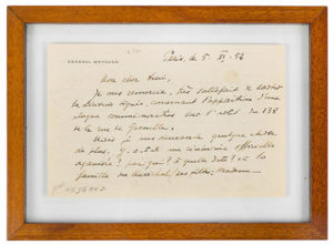 Maxime WEYGAND (1867-1965). L.A.S., Paris 5.XI.1952, à un ami ; 2 pages obl. in-8 à son en-tête Général Weygand (encadrée).