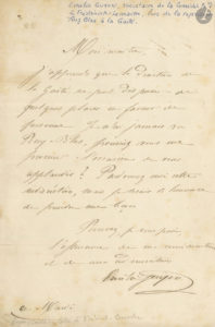 [Vers 1872-1875], à Philoclès Regnier (devenu régisseur général de la Comédie-Française). Elle désire parler avec lui du Bourgeois gentilhomme et du Malade imaginaire, car elle veut faire l’étude de ses rôles et a « besoin de savoir certaines traditions que je n’ai point »… – « Un peu plus et c’était votre journal qui m’apprenait ma nomination, quelle police ! J’irai désormais vous demander où en sont mes affaires, vous le savez mieux que moi »...