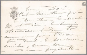 « Mon adoré, c’est Nenette qui te remettra ce mot. Elle te dira le succès étourdissant de ta maman qui t’adore, toi dont le souvenir nimbe mon cœur d’une perpétuelle auréole de joie. Je travaille beaucoup oh ! beaucoup mais je récolte en honneur et fortune le fruit de mon labeur comme dirait Jane d’Arc. Quand tu recevras cette lettre, ta fête sera passée tu auras je l’espère reçu mon Good-lock, mais ce que tu ne pourras jamais savoir assez c’est l’amour infini que j’ai pour toi mon fils mon fils mon Maurice. C’est cet amour qui me vivifie me laisse jeune me laisse en santé ; c’est un soleil sans fin que cet amour et je t’en offre tous les rayons mon bien adoré »…