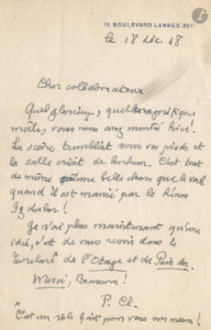 16 décembre 1949. Au lendemain de la première du Bossu de Paul Féval, Claudel dit son admiration à Pierre Brasseur qui jouait le rôle-titre : « Bravo Brasseur ! Je suis encore tout illuminé de ce beau spectacle d’hier soir, dont ma surdité m’a permis de jouir mieux encore en me permettant de prendre le champ nécessaire et de réduire le drame à sa composition essentielle. C’est beau de voir jaillir superbement le héros de ce bossu tel qu’un arc difforme tendu par les mains de la Justice »…