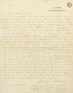 16 avril 1913, à une amie, qu’il sollicite pour « une très intéressante entreprise théâtrale dont je serai le directeur » [la société du théâtre du Vieux-Colombier], et qu’il prie de l’introduire auprès de personnes susceptibles de souscrire des actions…