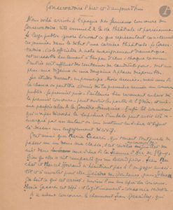 Béatrix DUSSANE. 2 manuscrits autographes signés, 1943-1948 ; 7 pages in-4 sur papier saumon avec L.A.S. d’envoi (1 p.), et 5 pages et demie in-4 (répar. au dernier f.).