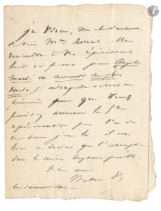 On joint un billet d’entrée pour la 1ère représentation de Ruy Blas [le 8 novembre 1838] (1 p. in-12 à en-tête du Théâtre de la Renaissance), au nom de M. A. Remy, portant au dos cette note autographe de Victor Hugo : « M. Gavarni VH ».