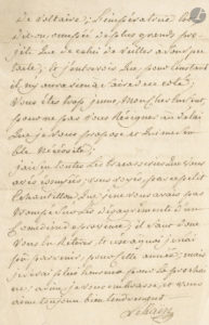 « Il vous faut renoncer, pour le moment, mon cher enfant, au voyage de Hesse Cassell ; il n’aura lieu que pour pasques 1778. J’attends, en conséquence, un engagement de Mr le marquis de Luchet ; il craint, dit-il, de vous mettre, cette année cy, en partage avec un tracassier que l’on congédie à l’expiration de son engagement ; il faut tacher de trouver, pour la campagne prochaine, de quoi vous occuper pour couler le temps, et vous donner encor plus d’usage du théatre ; je n’entends point parler de Pétersbourg, ce qui me fait présumer que l’on n’en a point encor rendû de réponse à Mr de Voltaire ; l’impératrice est, dit-on, occupée de plus grands projets que de celui de veiller à son spectacle ; […] vous êtes trop jeune, mon cher enfant, pour ne pas vous résigner au délai que je vous propose et qui me semble nécessité ; […] je ne vous avais pas trompé sur les désagréments d’un comédien de province ; il faut donc vous en retirer »…