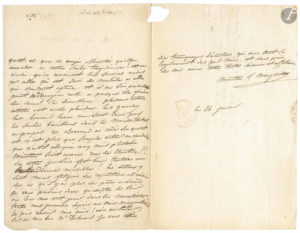 Jeanne Marie Françoise Menestrier dite MINETTE (1789-1853) actrice du Vaudeville puis du Gymnase. L.A.S. « Minette f Marguerite », 26 janvier [1829], à M. Duhamel, avocat ; 2 pages et demie in-8, adresse.