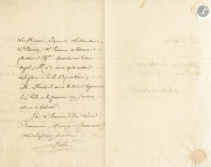 François-René MOLÉ (1734-1802). L.A.S., 18 juin 1773, à M. d’Alainval, « Premier Semainier à la Comédie Française » ; 2 pages in-8, adresse.