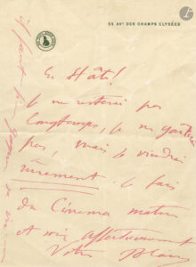 longtemps, je ne goûterai pas, mais je viendrai sûrement. Je fais du cinéma, matin et soir […] Il faut bien gagner sa vie…