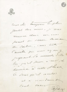 « Je ne trouve pas gentil qu’elle nous démonte la pièce au moins pour les trois premières » ; Réjane charge Wolff de la décider à rester… – « Vous êtes toujours le plus gentil des amis, je vous remercie donc en vous priant de serrer la main de Sardou [l’auteur de Madame Sans-Gêne qui fut le grand succès de Réjane], avec toute l’amitié que vous avez en y joignant la mienne. Dites lui qu’il pense à moi, il donnera à cette phrase le sens qu’il voudra »… – Craiova (Roumanie) 1er décembre, au sujet de l’engagement de Blanche Toutain au Vaudeville ; mais elle doit renoncer à Andrée Mégard (femme de Firmin Gémier) dont les conditions sont trop élevées...
