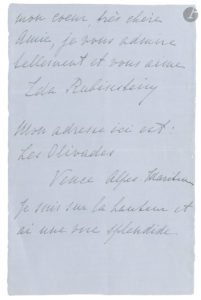 Ida RUBINSTEIN (1885-1960). L.A.S., Vence, 2 janvier 1960, à une « très chère et grande amie » ; 3 pages in-8.