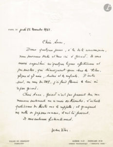 Émouvante lettre à la veuve de Gérard Philipe. À l’approche du jour anniversaire de la mort de Gérard Philipe, Vilar...