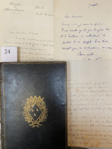 [DIVERS]. 6 L.A.S. et un carnet d'autographes. • Aristide Briand, • Jules Cambon, • Armand Fallières, • Gabriel Hanotaux, • Raymond Poincaré, • Jules Simon. Carnet d'autographes (in-8°) dans une reliure de réemploi aux armes d'une...