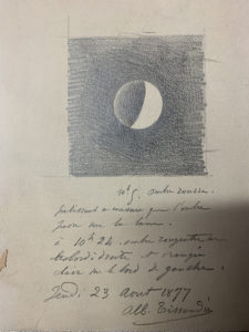 Albert TISSANDIER (1839-1906). P.A.S. avec dessin, 23 août 1877 ; 1 page in-8° au crayon noir. Dessin d'une éclipse, avec commentaire au-dessous. JOINT : 5 l.a.s. à lui adressées, 1875-1880, dont 3 par Jean Best du Magasin pittoresque.