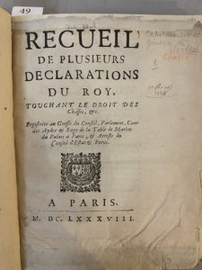 [SÉNART]. Réunion de 56 pièces imprimées des XVIe au XVIIIe siècles en un volume in-4°, demi-vélin ivoire, pièce de titre en maroquin rouge au dos, tête dorée, non rogné (reliure mi-XIXe s.). RECUEIL UNIQUE DE 56 « Declarations du Roy »,...