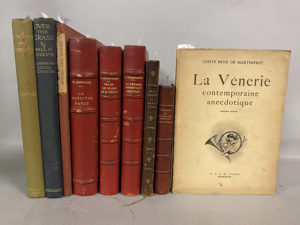 Ensemble de neuf volumes divers. • MARTINPREY. Drames de chasse et d'amour sous Louis XV - sous la Terreur. Paris, Nourry, 1929. In-8°, demichagrin rouge. • MARTINPREY. La Vénerie contemporaine anecdotique. Paris, O.C.L.B., 1937. In-8°...