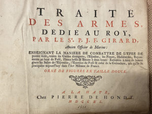 GIRARD (Pierre Jacques François). Traité des Armes [...] enseignant la maniere de combattre de l'epée de pointe seule, toutes les Gardes étrangeres, l'Espadon, les Piques, Hallebardes, Bayonnettes au bout du Fusil, Fleaux brisés & Bâtons à...