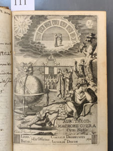 MACROBE. [...] Opera. Accedunt Notæ integræ Isacii Pontani, Joh. Meursii, Jacobi Gronovii. Lugduni Batavorum [Leyde], Ex Officina Arnoldi Doude & Cornelii Driehuysen, 1670. In-8°, veau blond, fine roulette dentelée dorée encadrant les plats, dos...