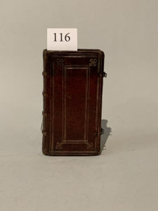 dos à nerfs orné du même décor, tranches dorées, fermoirs en métal sur lanières de cuir (reliure de l'époque). Annotation manuscrite en page de garde : « Janville Jésus (?) » TRÈS BEL EXEMPLAIRE EN MAROQUIN ROUGE ORNÉ DE LYS.